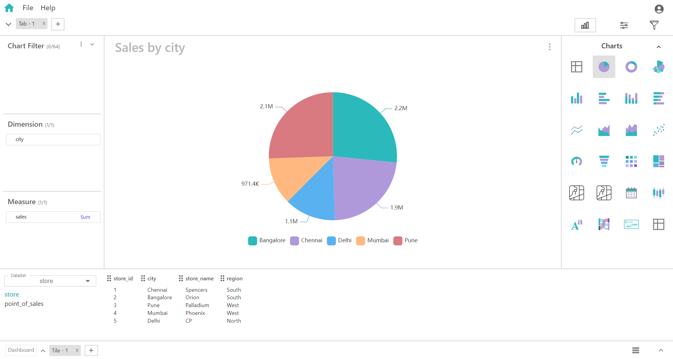 This is the numerical value that determines the size of each slice. The measure reflects the proportion or percentage of the total that each dimension category represents.